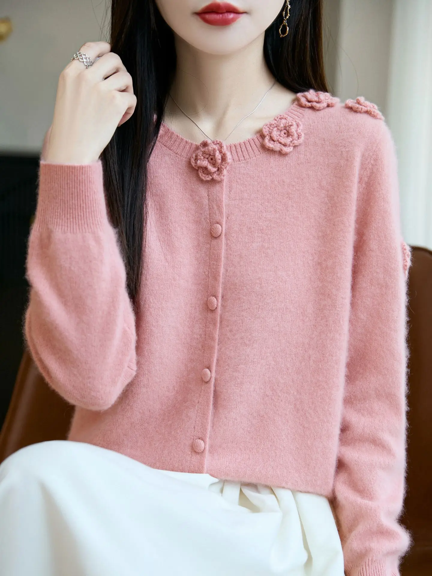 The sweater is made of a single thread, without any joints, it is very soft, comfortable, and high-end.